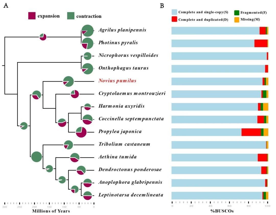 Many ladybird beetles are beneficial insects that are used for biological control of agricultural pests. In fact, about 70% of the ladybirds feed on insects like aphids and scales, while other beetles who are closely related to ladybirds mainly feed on fungi. So how did ladybirds evolve to be insect feeders? Why can they be excellent biological control agents? To answer the above questions, the research team led by Professor Hong Pang from School of Ecology, Sun Yat-sen University is trying to find out the molecular mechanism of feeding habit evolution of these fantastic group, with a series of results published in BMC Genomics (Chen et al. 2020; Li et al. 2021) and BMC Biology (Li et al. 2021). Recently, they published a new research article entitled “Genomic insight into the scale specialization of the biological control agent Novius pumilus (Weise, 1892)” in BMC Genomics, giving new insight into feeding evolution of ladybirds.