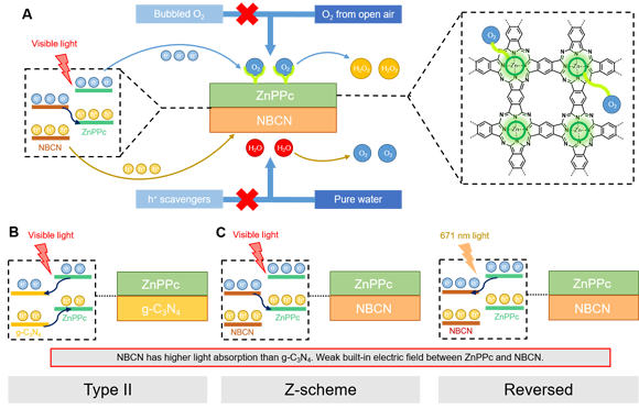 4 under visible light illumination. (C) Electron transfer in ZnPPc-NBCN under visible light or monochromatic light illumination.