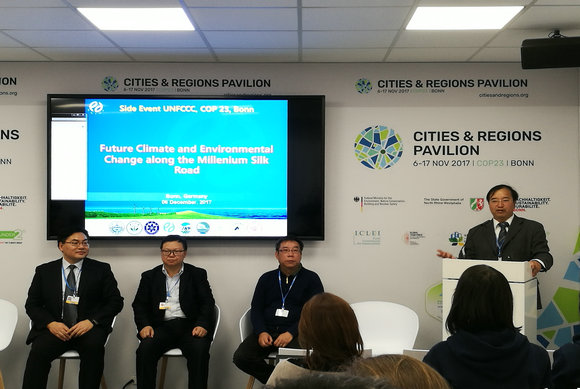 On the conference opening day, a side event “The future climate and environment change along the Millennium Silk Road”, jointly organized by China Association for Science and Technology, Chinese National Committee for Future Earth, Chinese Academy of Sciences and China Meteorological Administration, was held at the Cities and Regions Pavilion in the Bonn zone. Professor Wenjie Dong, Dean of the School of Atmospheric Sciences at Sun Yat-sen University, was invited to serve as the head of delegation of COP23 by the Working Group for UN Environment Consultation - China Association for Science and Technology (WGUNEC-CAST), and chaired the side event.