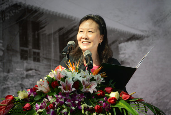 Mr. Chen Qijin giving a speech on behalf of his family members