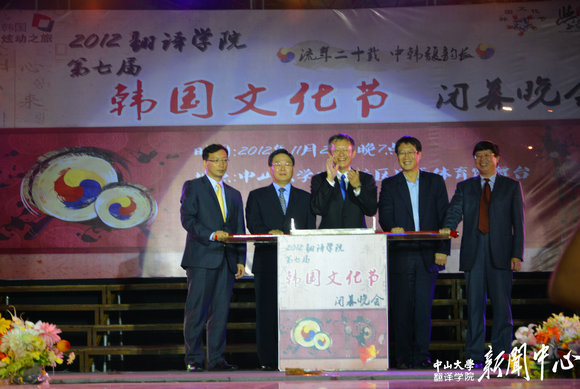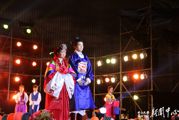 On the evening of November 23, the closing gala of the 7th Korean Culture Festival hosted by the School of International Studies (SIS) was held on Zhuhai campus of Sun Yat-sen University. Yang Chang Soo, Consul-General of the Consulate General of the Republic of Korea in Guangzhou; Choi Gang Hee, Consul of the Consulate General of the Republic of Korea in Guangzhou; Ra Seong Hoo, Undersecretary of Korea Tourism Organization (KTO) Guangzhou Office; Chen Chunsheng, Executive Deputy Secretary and Vice President of SYSU; Huang Guowen, Dean of SIS; Wu Xiangming, Deputy Director of Zhuhai Education Bureau; Ke Ming, Secretary General of Zhuhai Tourism Federation; and more than six hundred teachers and students on Zhuhai campus enjoyed the closing gala together.