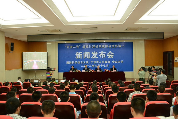 On June 17, National University of Defense Technology, the People’s Government of Guangzhou Municipality and Sun Yat-sen University jointly held a news conference in Changsha. Li Nan, deputy chief designer and spokesman for the Tianhe-2 project, introduced that Tianhe-2 was currently the world’s fastest supercomputer with its comprehensive technology reaching international advanced level. It has five major features: high-performance, low energy consumption, broad applications, easy to use, and good price/performance ratio. Liao Xiangke, chief designer for the project, pointed out that the successful development of Tianhe-2 and its heading the TOP500 list of world supercomputers is an iconic achievement of the first phase of “high-performance computer development”, a major project by the Ministry of Science and Technology. This is of strategic importance in elevating our country’s comprehensive national strength, and providing more advanced technology to solve major challenging problems in economic, social, scientific and technological development.