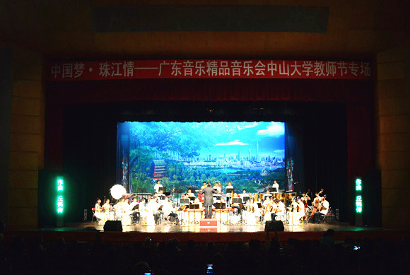 To celebrate the 29th Teachers' Day, the Guangdong Music and Folk Art Troupe was invited to perform a concert of classical Cantonese music for nearly a thousand SYSU teachers and students at K.K. Leung Hall on South Campus on September 6. This event was co-hosted by the Publicity Department, Pensioners Office, SYSU Labor Union and SYSU Youth Association.