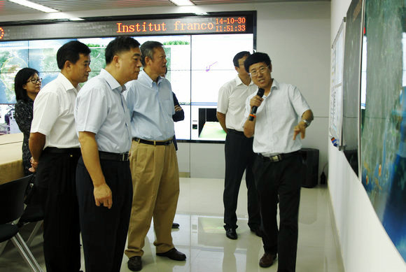 The delegates also visited Sino-French Institute of Nuclear Engineering and Technology (IFCEN) and its labs: Laboratory of Nuclear Physics, Multi-phase Flow and Microfluidics Laboratory, Nuclear Electronics Laboratory, and Nuclear Environment Monitoring and Emergency System Laboratory. They listened to the introduction of the school-running philosophy and R&D center made by Prof. Wang Biao, Chinese Dean of IFCEN, and inquired about the student employment, environment monitoring project and the cooperation with local governments.