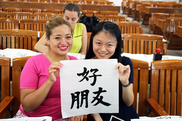 The summer camp started officially on June 2. The campers took various courses, including Comprehensive Chinese, Chinese Communication and Chinese Culture, which were prepared by instructors of teaching Chinese as a second language. These courses not only helped them grasp basic Chinese expressions, but also increased their interest for learning Chinese. In Peking Opera class, the campers learned to make “orchid fingers”; in calligraphy class, they learned to write with Chinese brushes; in Chinese movie class, they showed admiration for Chinese Kung Fu.