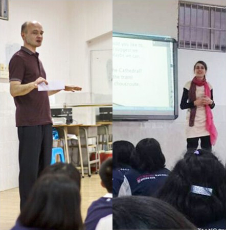 Vladimir and Lucie give lectures at Tangjia Middle School.