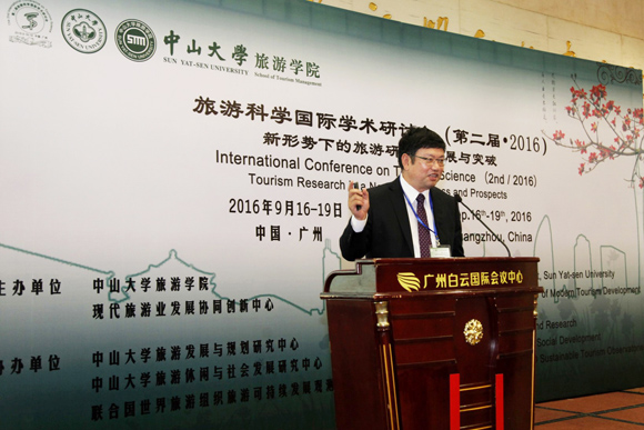 The Second International Conference on Tourism Sciences was successfully held in Guangzhou Baiyun International Conference Center on September 16-19, 2016. The conference was hosted by the School of Tourism Management at Sun Yat-sen University and the Collaborative Innovation Center of Modern Tourism Development. Co-organizers are namely the Center for Tourism Planning and Research (Sun Yat-sen University), the Center for Tourism, Leisure and Social Development (Sun Yat-sen University) and the Monitoring Center for UNWTO Sustainable Tourism Observatories.