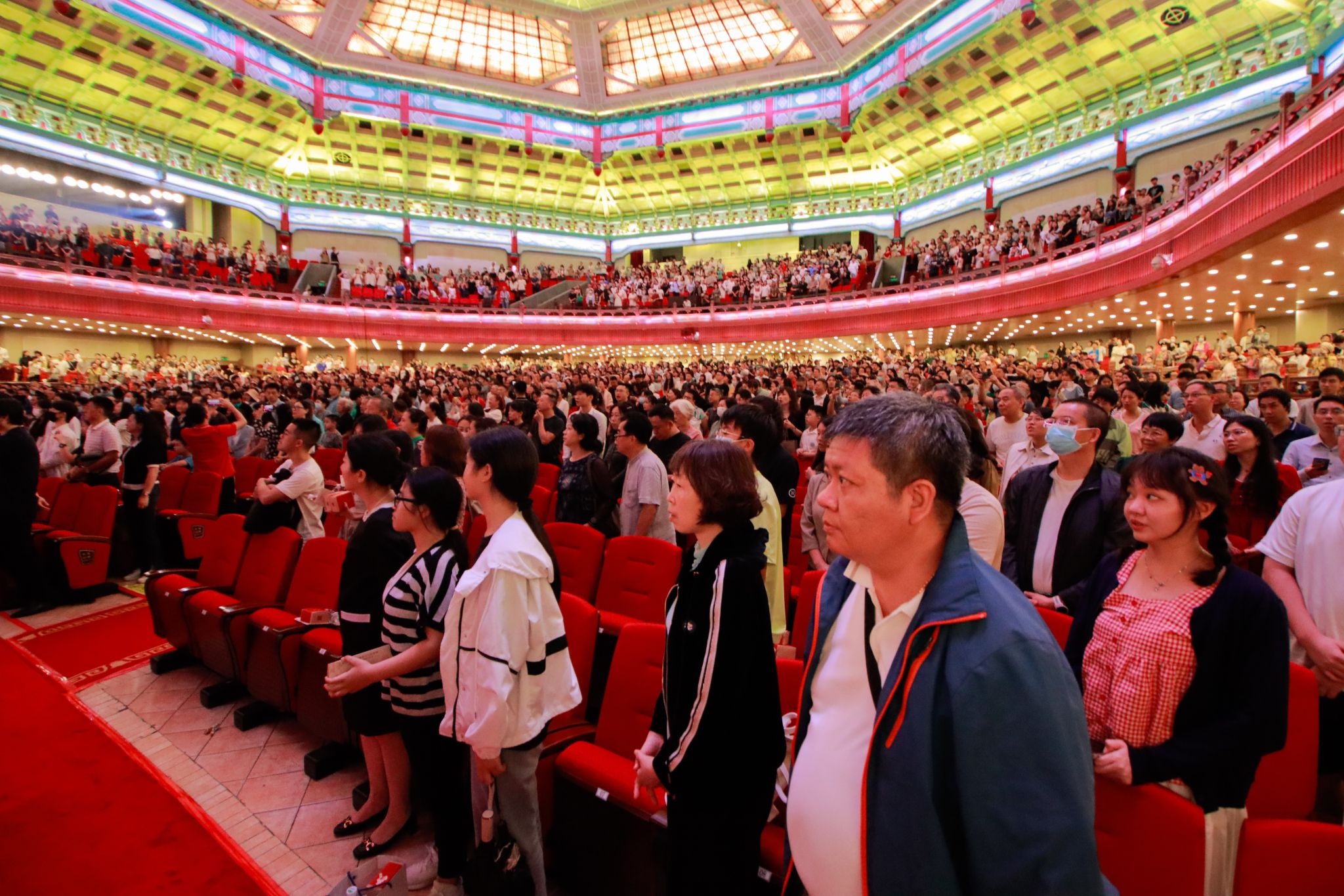 The audience stands up and sings the school song. [Photo by Xiao Yao]