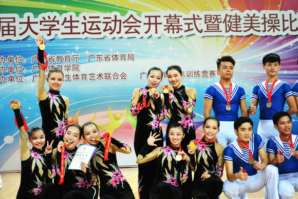 On June 8-12, 2015, the Aerobics Competition of the 9th University Games of Guangdong Province was held in Guangzhou Sport University, attracting participants from thirty colleges and universities.
