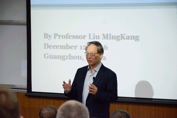 Two lectures under the theme of “The Belt and Road Initiative”, and “Complacencies, Lies, Panics and Crashes” were delivered by Prof. Liu Mingkang, Honorary Dean of Lingnan College and former Chairman of the China Banking Regulatory Commission. Another lecture under the theme of “Global Strategy--A Chinese Perspective” was delivered by Prof. Hu Songhua, Associate Professor of Department of Economic Management, Lingnan College.