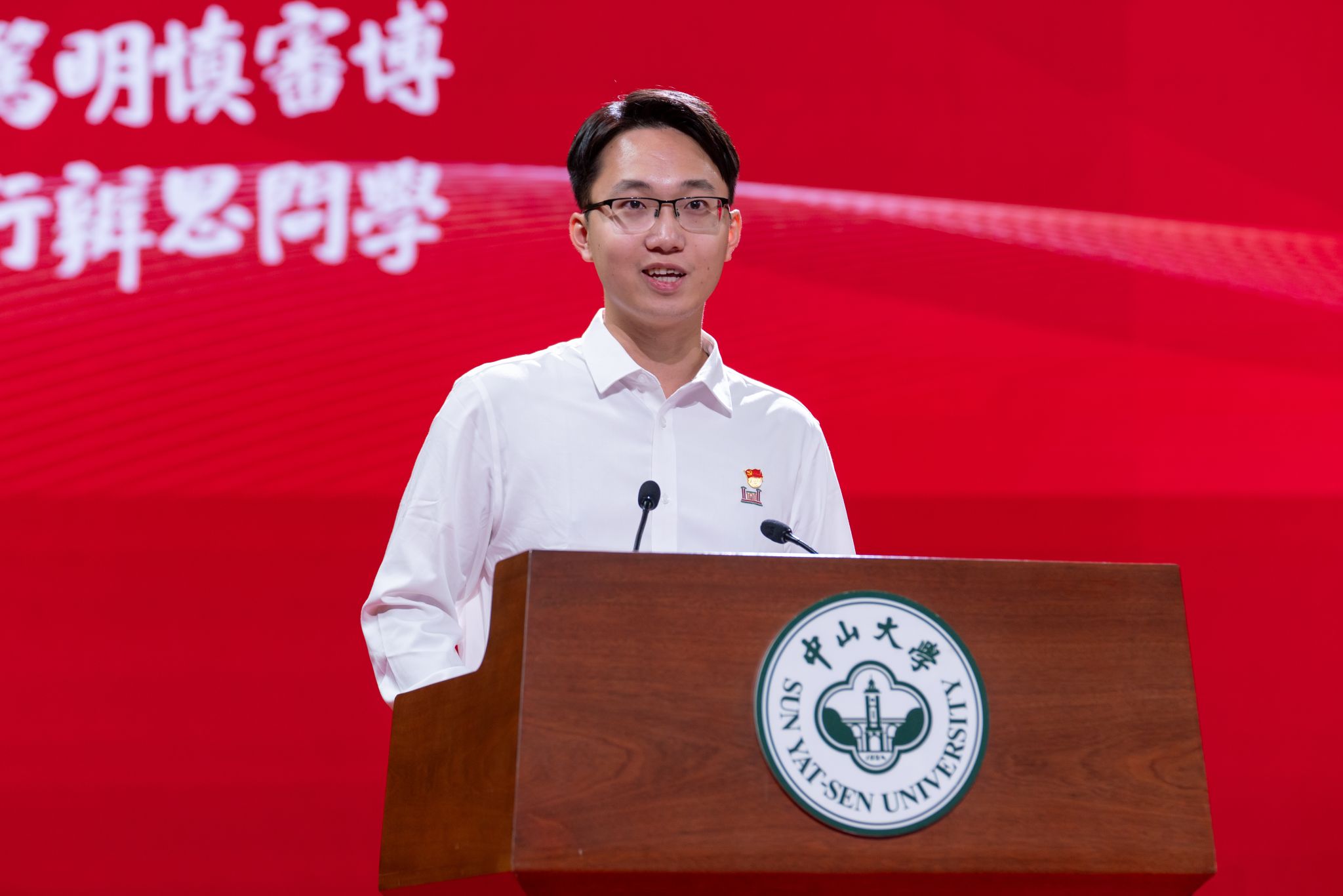 Zehui Qiu, a first-year undergraduate student from Zhongshan School of Medicine, shared her perspective on what it means to be a new-generation SYSU student, defining this spirit through a mindset of integrity, a dedication to truth-seeking, and a commitment to action. She also talked about her aspiration to combine medical knowledge with sports injury research in her future studies.