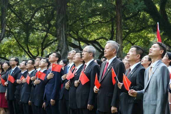 The faculty and student representatives also sang a song of praise to the motherland, waving five-star red flags and expressing best wishes to the motherland.