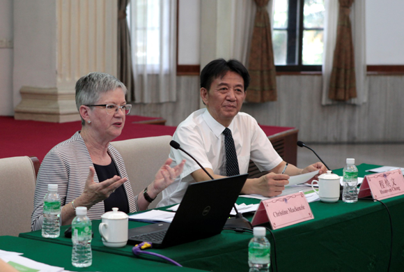 In the morning, Ms. Christine Mackenzie visited many famous historical buildings on the campus, inspected University Faculty Collection Room, National Conservation Center for Rare Books, Special Collection Room and Rare Collection Room in the library, and spoke highly of the development status of the library.