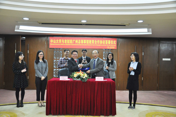 On the morning of March 22, 2017, the Signing Ceremony of Memorandum of Understanding on the Undergraduate Scholarship Program between Sun Yat-sen University and the Consulate General of the Lao People's Democratic Republic in Guangzhou was held on Guangzhou South Campus.
