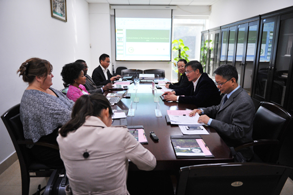 In the morning, the 2016 Board Meeting of CI-UCT was held. The attendees included Prof. Yan Guangmei, Vice President of SYSU; Prof. Chang Chenguang, Vice Dean of School of International Studies; Ms. Gu Wenli, Deputy Director of Office of International Cooperation & Exchange; Associate Professor Qin Shengyong, Chinese Director of CI-UCT; Prof. Evance Kalula, Local Director of CI-UCT; and Prof. Rosina Mamokgethi Phakeng.