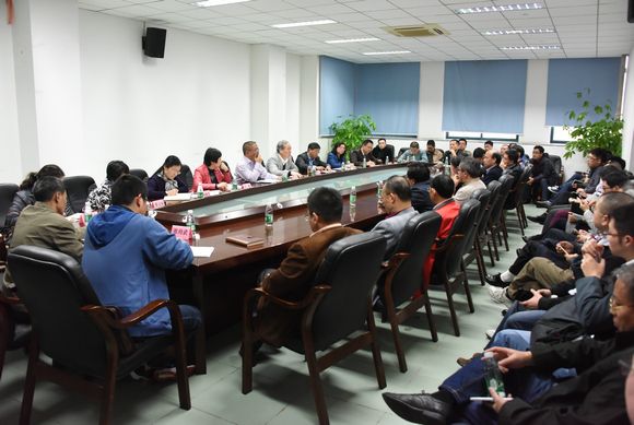 University leaders and administrative department directors have a meeting with leaders and faculty members of the School of Physics and the School of Materials Science and Engineering.