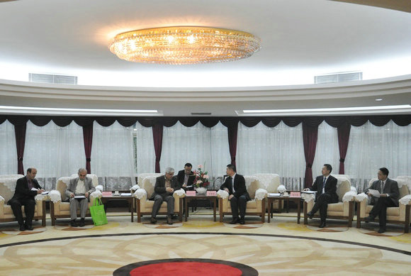Prof. Yu Minbin (third from right) meeting with Prof. Hooshang Talebi (third from left)