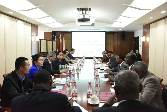 Prof. Zheng Detao extended a warm welcome to the Ethiopian delegation. He said that it is significant for the delegation to visit SYSU in the 45th anniversary of the establishment of the diplomatic relations between China and Ethiopia. SYSU will explore cooperation with Ethiopia in the field of scientific research and education.