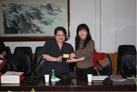 Ms Chen Meiyue(left) exchanged souvenirs with Secretary General Xu Dongli