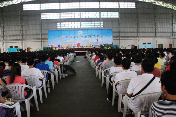 From September 9-10, opening ceremonies for new students were solemnly held at South Campus, North Campus and Zhuhai Campus respectively. The newly enrolled 7900 undergraduates and more than 6000 postgraduates and Ph. D students swore at the ceremony to bear the school motto in mind to study hard and contribute to the society. Attending the gathering were administrative officials Zhen Detao, Huang Daren, Liang Qingyin, Li Ping, Wang Jianping, Xu Ningsheng, Li Mengfeng, Chen Chunsheng, academician Su Qiang, Lin Haoran, Assistant to President Bao Jigang and deans of various schools and departments. SYSU Vice President Li Mengfeng presided over the ceremony and Vice President Chen Chunsheng and Wang Jianping administered the oath taken by new students.