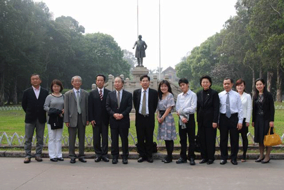 On the morning of 21 March, accompanied by the staff of Foreign Friendship Association of Guangdong Provincial Government, the great-grandson Umeya Shokichi (donor of the bronze statue of Sun Yat-sen in SYSU), a close friend of Dr. Sun Yat-sen, Ms. Kosaka Fumio, managing director of Song Ben Buiding where Dr. Sun Yat-sen used to conduct revolutionary activities, and 6 other delegate members paid a visit to SYSU. Vice President Xu Anlong greeted the visitors. Chen Wangnan, head of President Office, and Xu Yao, vice head of Office of International Cooperation & Exchange participated in the talk. Both sides expressed intentions of further cooperation. The guests visited Huai Shi Hall, Hei Shi Hall, Sun Yat-sen Bronze Statue, and Martin Hall which has affinity with Dr. Sun Yat-sen. Prof. Lin Jiayou introduced the developments and anecdotes behind these scenic spots.