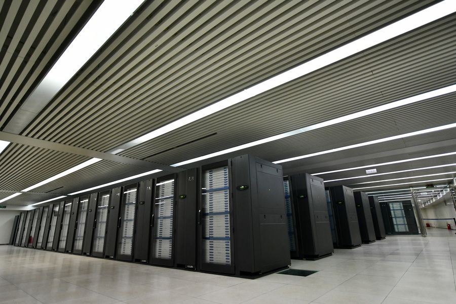 Photo taken on Jan 21, 2019 shows the computer room of Tianhe-1 at the National Super Computer Center in Tianjin, North China. [Photo/Xinhua]