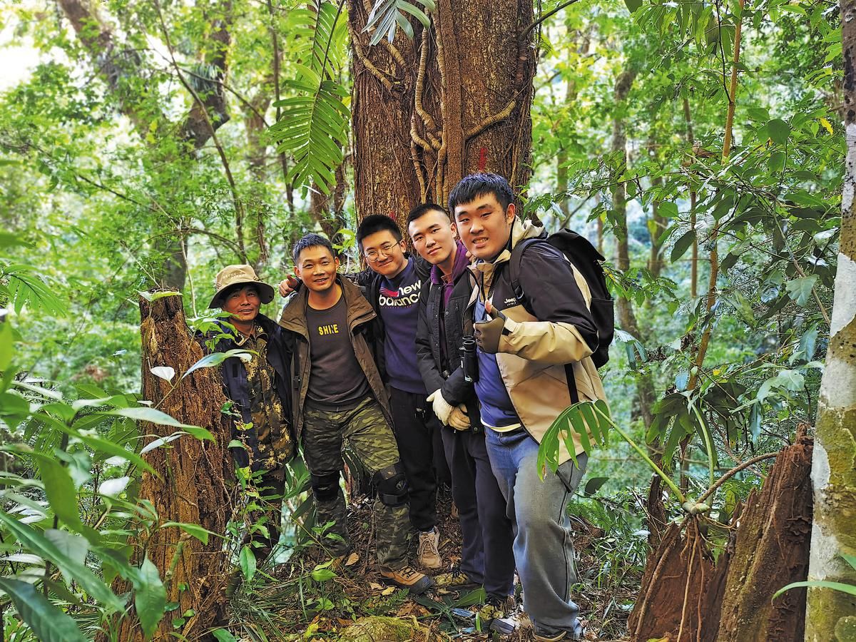 Professor Fan Pengfei (second from left) poses with his students during a field survey in Baoshan last week. CHINA DAILY
