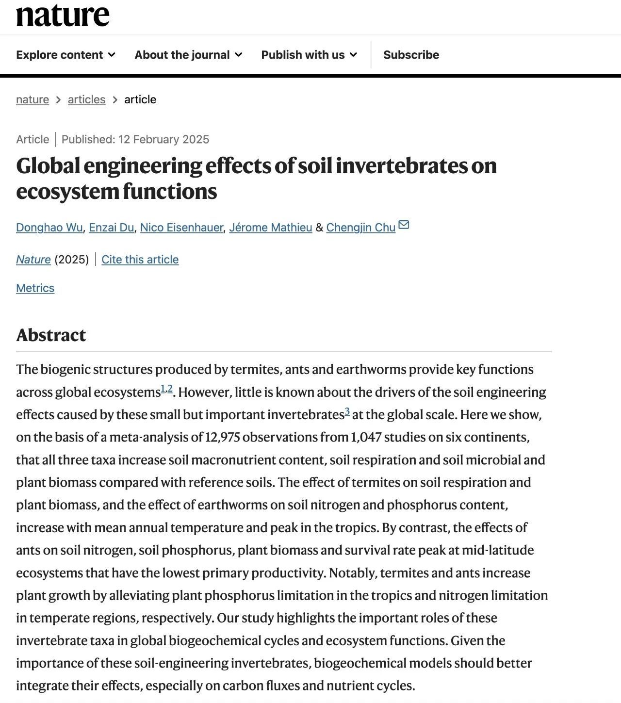 Chu Chengjin, who led the research team, highlighted the significant contributions of soil invertebrates to global element cycling, material degradation, and biodiversity maintenance.
