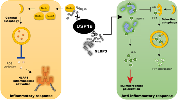 Research teams of Prof. Jun Cui and Prof. Junjiu Huang from the School of Life Sciences cooperate to demonstrate a novel mechanism that USP19 promotes anti-inflammatory response by manipulating macrophages polarization