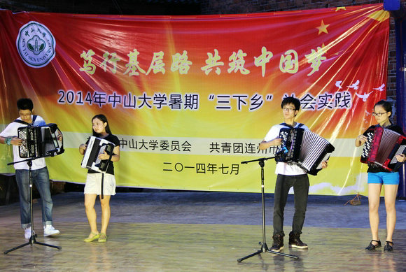 On July 2-5, led by Vice President Yan Guangmei, the 2014 SYSU Summer Holiday Comprehensive Service Team went to Zhongtian Village and other villages in Lianzhou to “bring culture, technology and healthcare skills to the countryside”. The team members consisted of teachers and students from Hospital of Stomatology, The First Affiliated Hospital, Zhongshan Ophthalmic Center, School of Physics and Engineering, and artistic groups at SYSU.